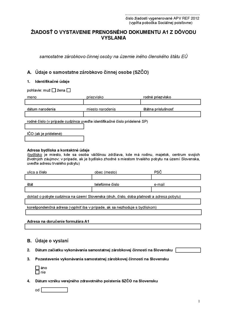 Žiadosť o vystavenie PD A1 (PDF) na stiahnutie: